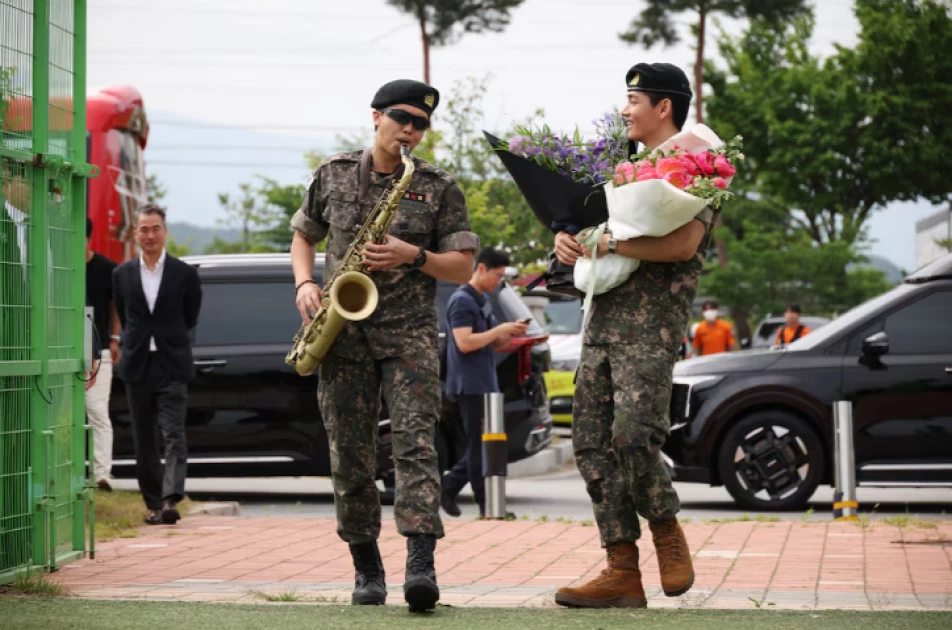 K-pop superstars RM and V from BTS wrapped up their mandatory military service on Tuesday, much to the delight of their fans who are eagerly anticipating the group’s return, especially with more members set to finish their duties later this month. As they stepped out in their army uniforms, they were greeted by a cheering crowd near the military base, where they saluted and promised fans that they would be back on stage soon.
