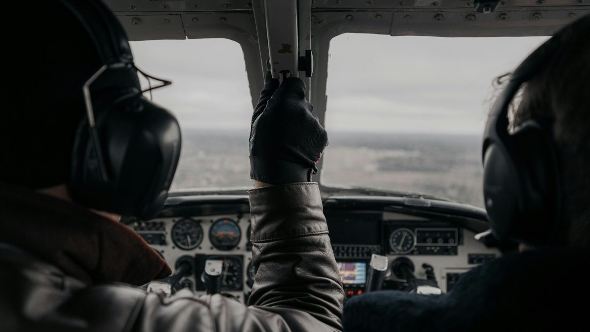 Pilots in the cockpit during flight.
