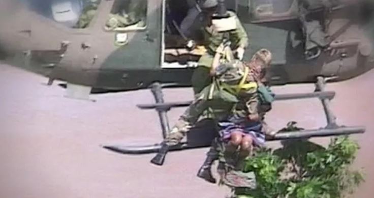 A file photo of when newborn Rosita and her mother were being winched to safety by helicopter